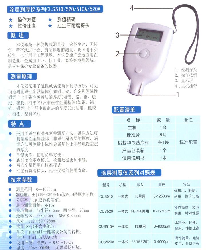 涂層測(cè)厚儀系列CUS510_520_510A_520A